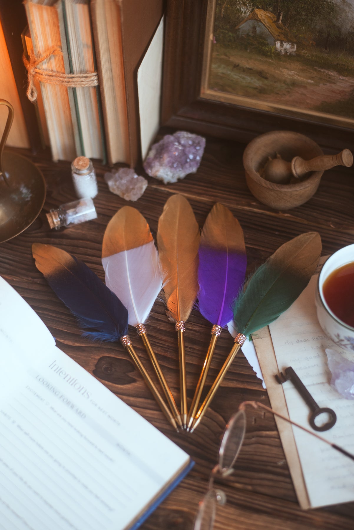 The feather quill has long represented genuine expression, a bridge between thought and page, intention and reality. Writing with a feather invites you to speak from the heart: transparent, courageous, and free.